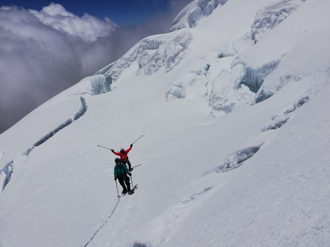 Conditions improved a bit later and the ascent of Cayambe was made in daylight